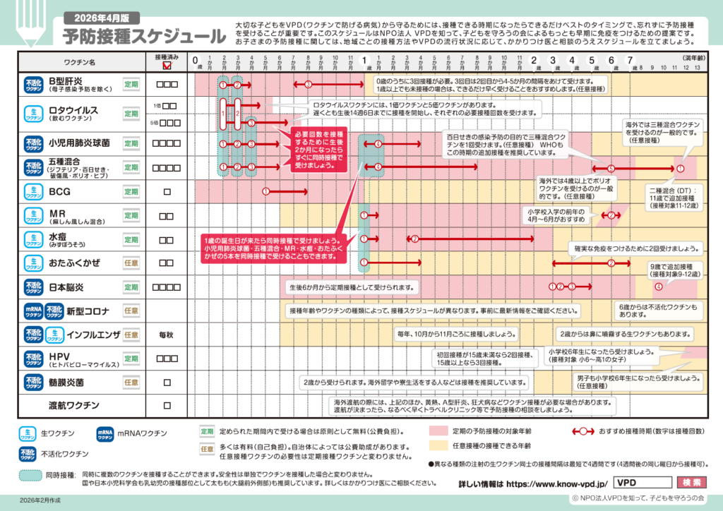 1歳になったら接種できるワクチン